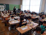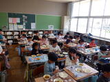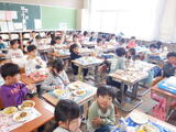 1年生の給食がスタート!小学校での初めての給食でしたが、上手に配膳できました。人気メニューのカレーライスを美味しくいただきました。