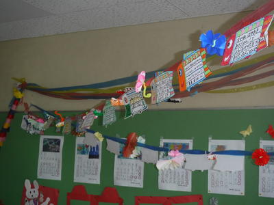 先生たちからみんなへのメッセージを鯉のぼりに書きました。