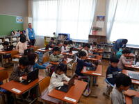 1年生が初めてタブレットを使った授業に挑戦しました。