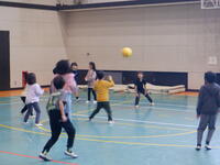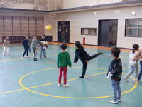 今週は、運動委員会主催のドッジボール大会が開催されています。今日は、1年生がお昼休みに体育館でドッジボールを楽しみました。