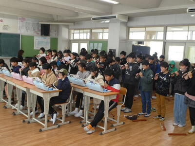 「キリマンジャロ」の合奏をしたり、学習したことのまとめを発表したりして、楽しいひと時となりました。
