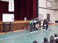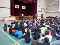 校長先生からは、正月の箱根駅伝から、最後まで諦めず粘り強く頑張り続けることと襷を繋いでいく様子からチームで力を合わせることの大切さについてお話を聞きました。