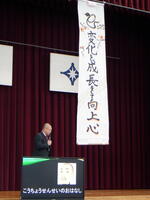 また、今年のえと巳年について「蛇」は自らが変化しながら成長する生き物で、児童の皆さんには、向上心をもって挑戦を続けて欲しいと言われました。