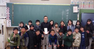 環境委員会児童の呼びかけで9月から取り組んできたアルミ缶回収。保護者の皆さん、校区内自治会の協力を得て、収益金が3万円を超えました。そこで伊吹山植生復元プロジェクト応援金として寄付させていただきました。環境委員会児童は、まち保全課の川瀬さんから、かつての緑豊かな伊吹山と現在の様子を聞き、今後もプロジェクトに取り組んでいく思いを深めました。