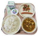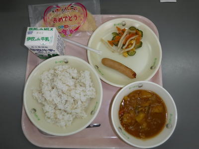 今日は「入学・進級おめでとうクレープ」がついたカレーライスの給食でした。